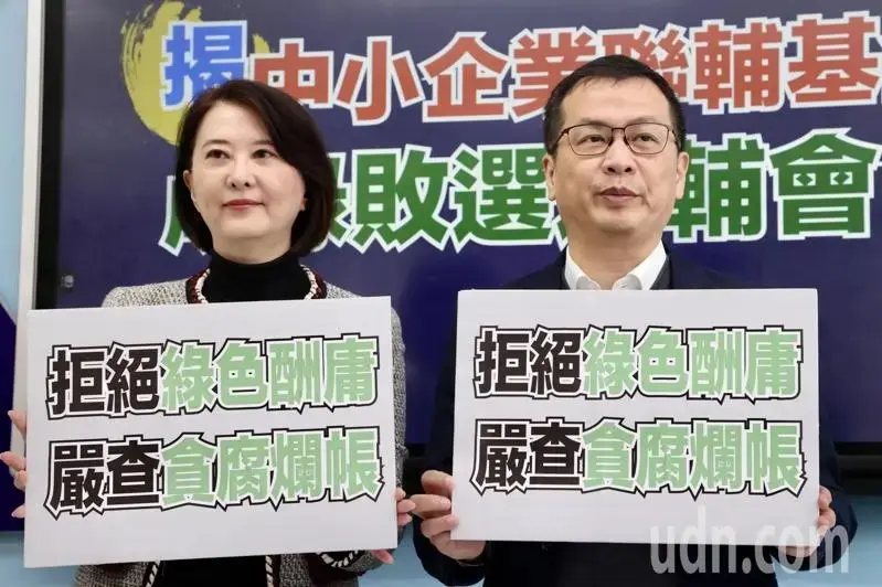 (國民黨立委王鴻薇、羅智強召開記者會,質疑台灣中小企業聯合輔導基金會淪為民進黨酬庸溫床。。圖/聯合新聞網)