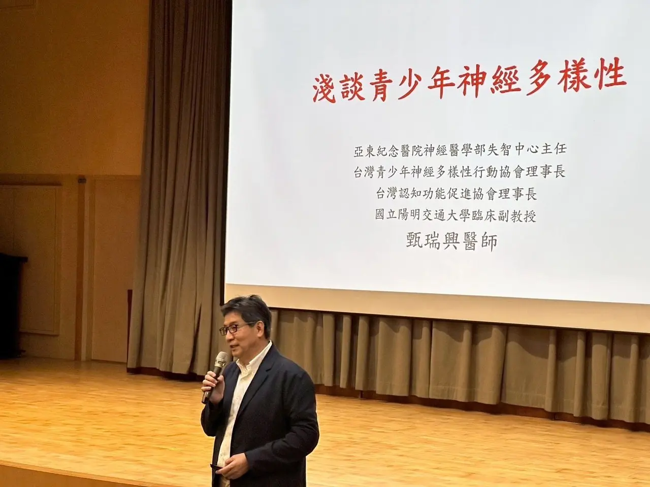 亞東醫院失智中心主任甄瑞興在在龜山龍華科技大學,與 200 多個大學老師們演講時,指出神經多樣性的家庭普遍缺乏可依賴的支持系統,「很多父母看見孩子與眾不同,卻不知道該去哪裡尋求幫助,有的甚至因此長期自責與挫敗。」他呼籲,家長應勇於尋求醫療與心理專業協助,也可透過「台灣青少年神經多樣性行動協會」了解更多資源。
